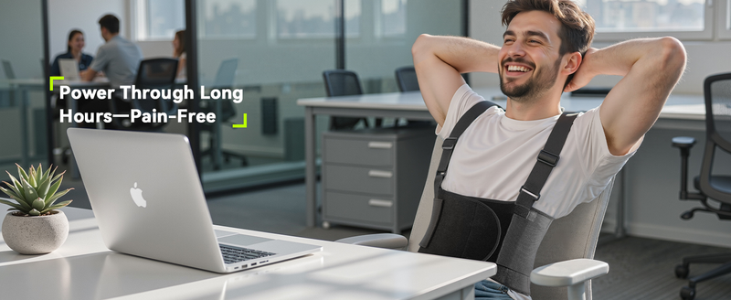 Stay aligned and comfortable from first email to last meeting. Our low-profile brace encourages upright posture and gentle core support, helping reduce end-of-day fatigue—at the office, in class, or working from home.